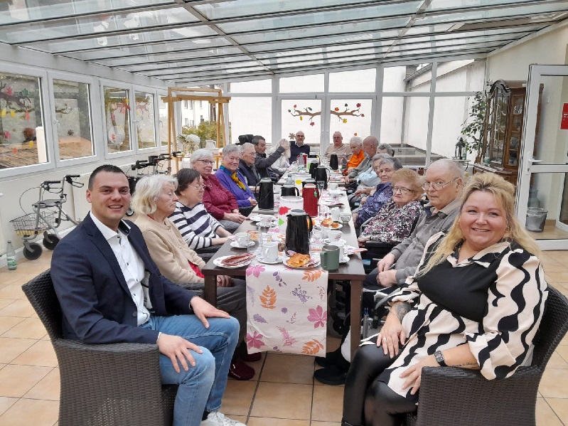 Gemeinsam mit den Beigeordneten brachte Ortsbürgermeister Florian Heyden die traditionellen Martinswecken mit, die im Anschluss bei Kaffee und guten Gesprächen verteilt wurden. In angenehmer Runde entstand sofort wieder die vertraute, herzliche Atmosphäre, die diesen Besuch jedes Jahr so besonders macht. Viele Bewohnerinnen und Bewohner nutzten die Gelegenheit, um Erinnerungen zu teilen, aktuelle Themen anzusprechen und in einem wertschätzenden Austausch miteinander und mit der Gemeindeverwaltung ins Gespräch zu kommen.